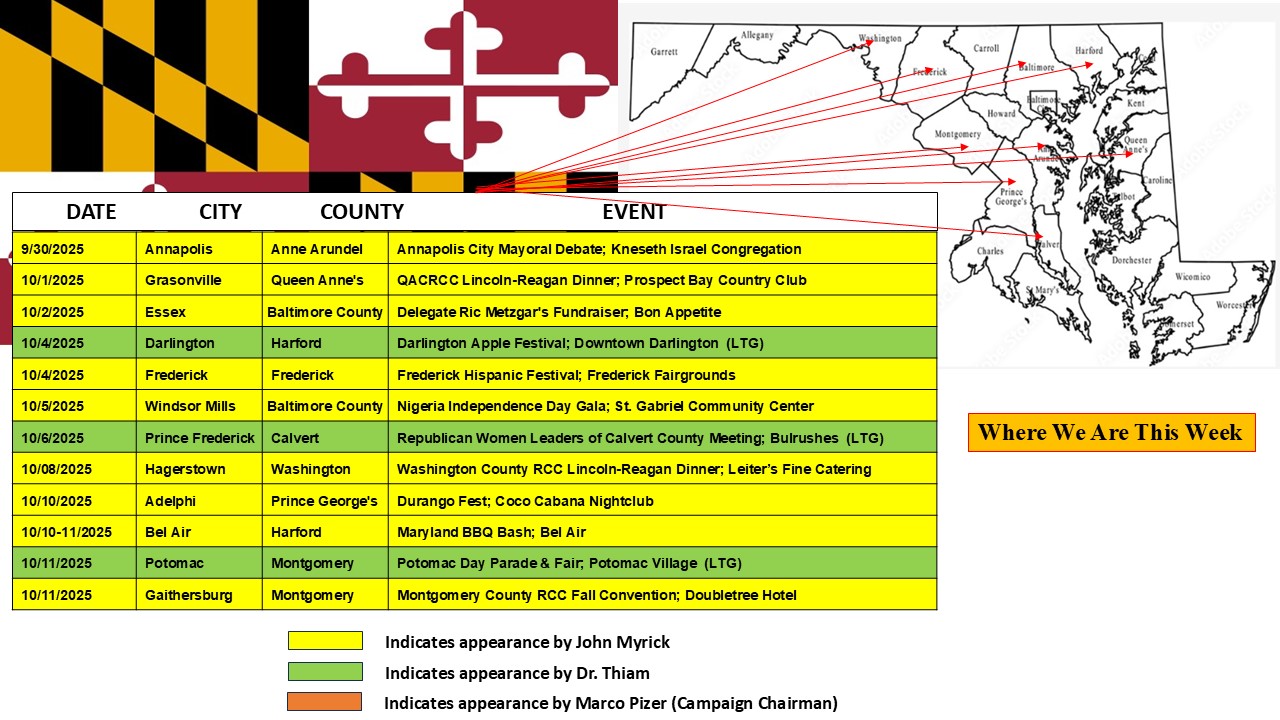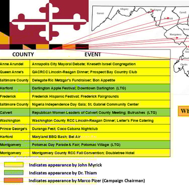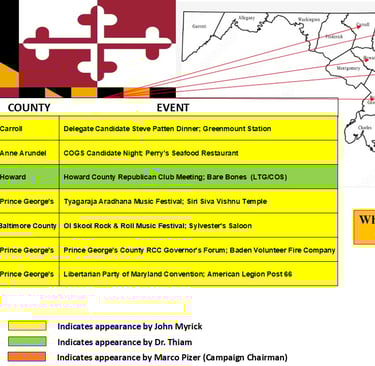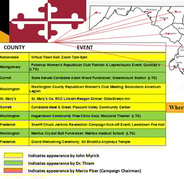 NOTE* - GREEN indicates Lt. Governor Candidate Thiam's appearances.