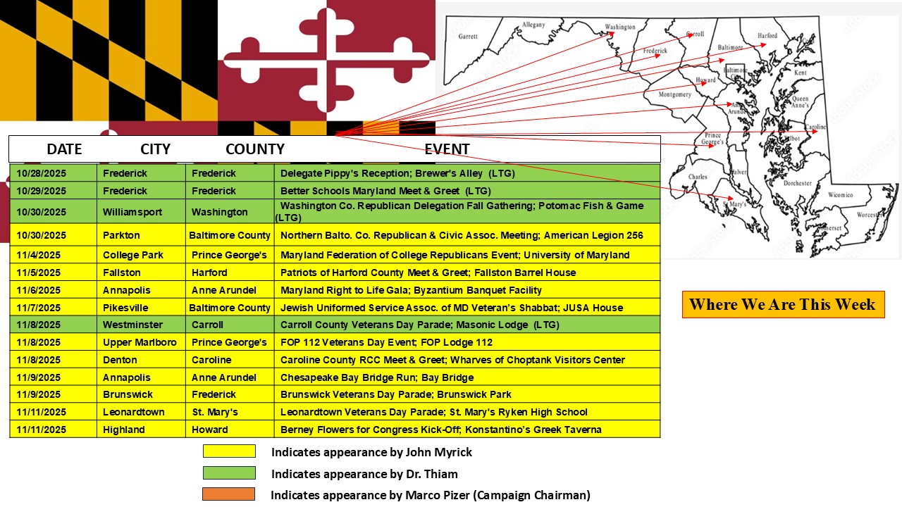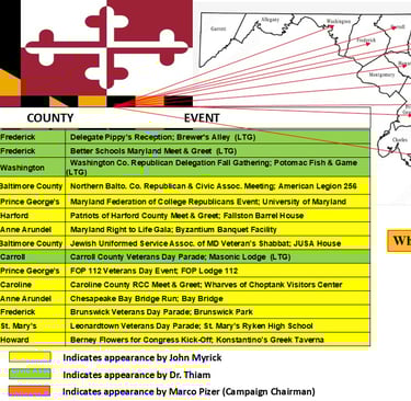 NOTE* - GREEN indicates Lt. Governor Candidate Thiam's appearances.
